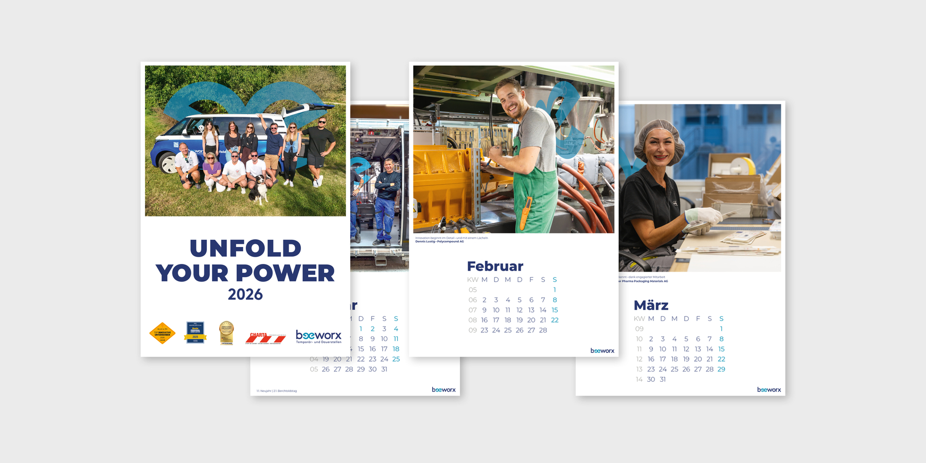 Neben der Website wurden auch Briefschaften, Give-aways, Kalender und weitere Kommunikationsmittel im neuen Design realisiert. Das sorgt für ein einheitliches Erscheinungsbild und stärkt die visuelle Identität der Marke auf allen Ebenen. Der neue Markenauftritt positioniert Beeworx als modernen, professionellen und verlässlichen HR-Partner. Er vereint Design, Symbolik und Kommunikation zu einem konsistenten, starken Markenauftritt – und macht die Werte und Stärken des Unternehmens klar erlebbar.
