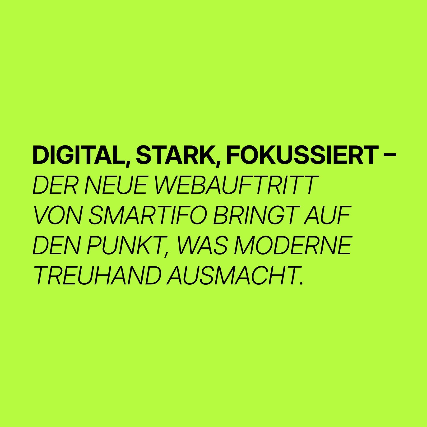 Die Website präsentiert sich digitalaffin, jung und selbstbewusst, mit einer klaren Bildsprache, knalligen Farben und einem starken Visual-Konzept. Die Tonalität ist zeitgemäss, direkt und sympathisch, passend zur Zielgruppe. Ergänzt wird das Design durch dezente Mikroanimationen und smarte Interaktionen, welche die Nutzerführung intuitiv machen und das digitale Mindset von Smartifo unterstreichen. Der Onepager transportiert das aktuelle Angebot kompakt, präzise und überzeugend – perfekt für eine dynamische Zielgruppe.